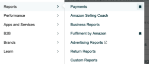 Amazon’un ödeme konusunda raporlarına Reports > Payments sayfasından ulaşılabilmektedir. Bu sayda Statement View, Transaction View, All Statements, Disbursements, Date Range Reports, Advertising Invoice History, Lending gibi ödeme ile ilgili belgelere ve raporlara ulaşabileceğiniz sekmeler yer alır.